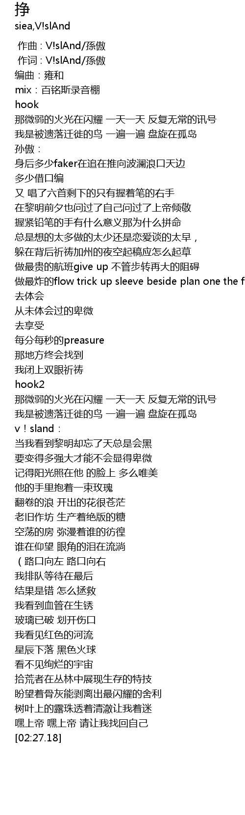 | [00:00.347] | 作词 : V!slAnd/孫傲 |