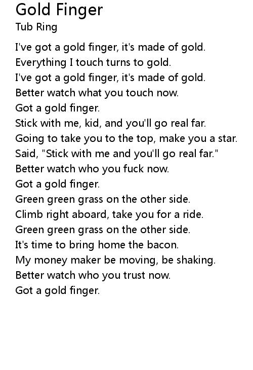 I've got a gold finger, it's made of gold. |