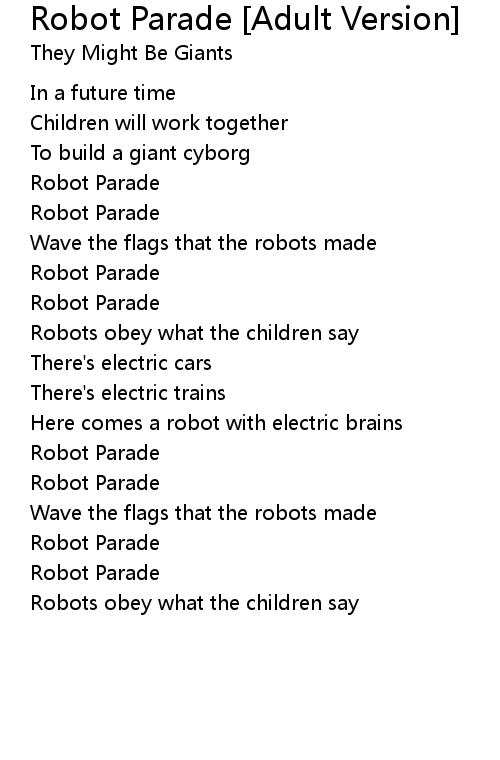 | 歌曲 | Robot Parade [Adult Version] |