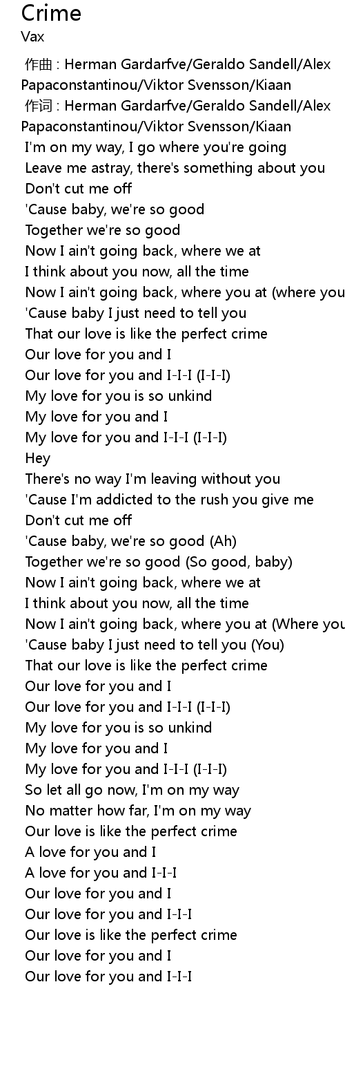 | [01:21.970] | That our love is like the perfect crime |
