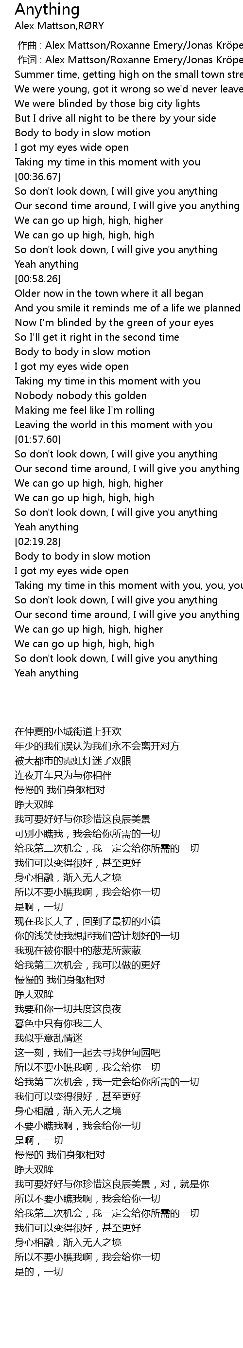| [00:01.000] | 作词 : Alex Mattson/Roxanne Emery/Jonas Kröper |