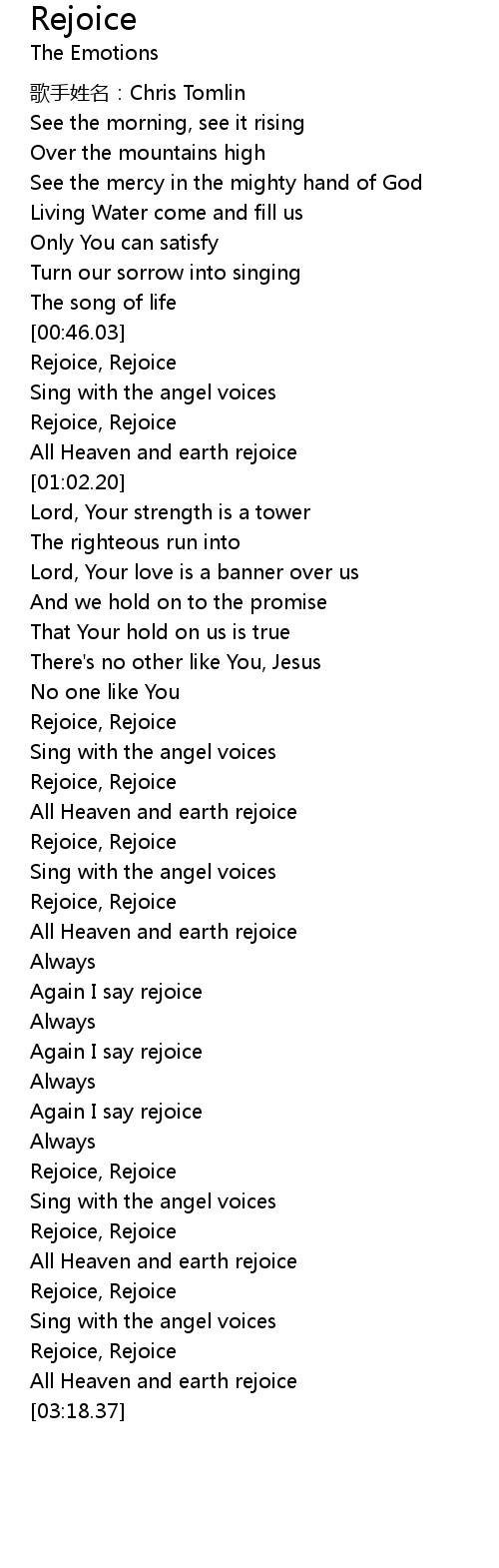 | [02:03.41] | Rejoice, Rejoice |