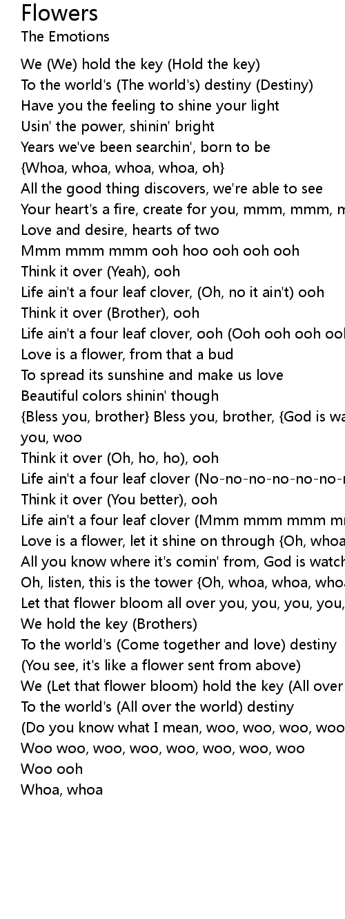 Love is a flower, let it shine on through {Oh, whoa, whoa, whoa, oh} |