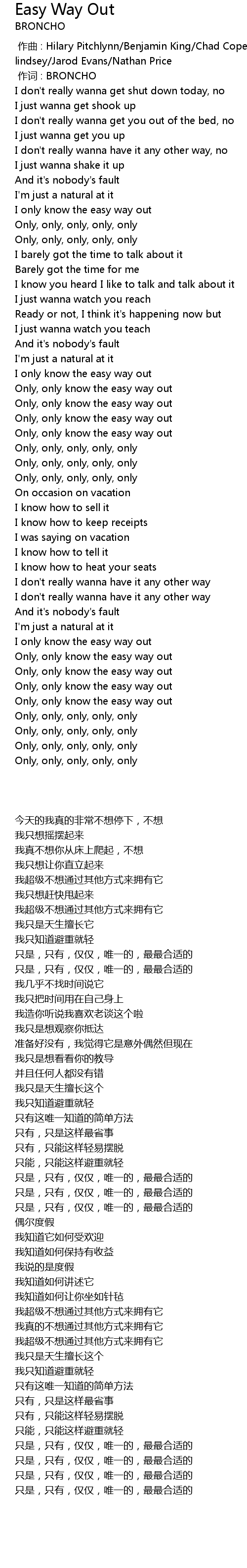 | 歌曲 | Easy Way Out |