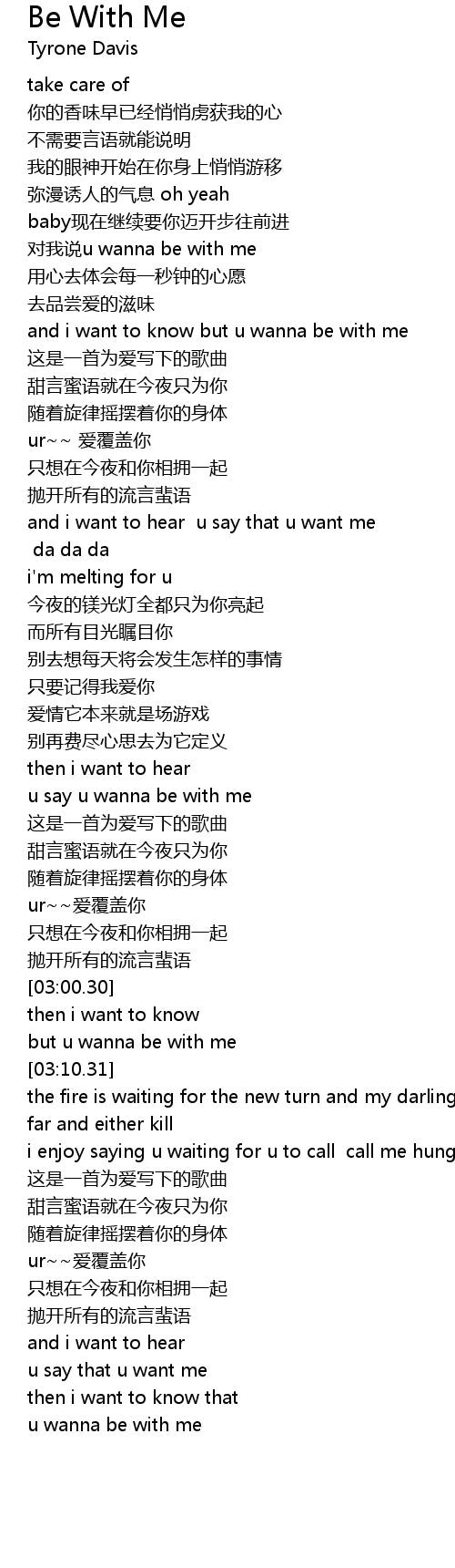 | [00:54.65] | duì wǒ shuō u wanna be with me |