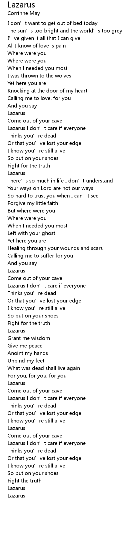 | [02:34.26] | Lazarus |