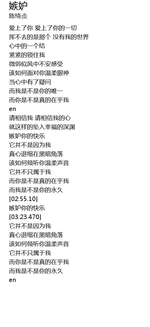 | [03:17.480] | 嫉妒你的快乐 |