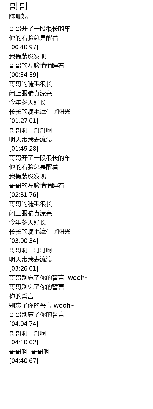 | [04:05.82] | 哥哥啊 哥啊 |