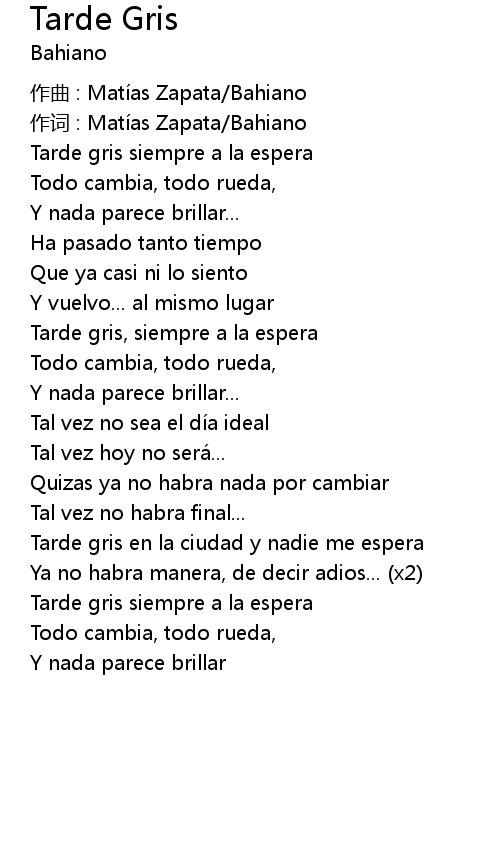 | 歌曲 | Tarde Gris |