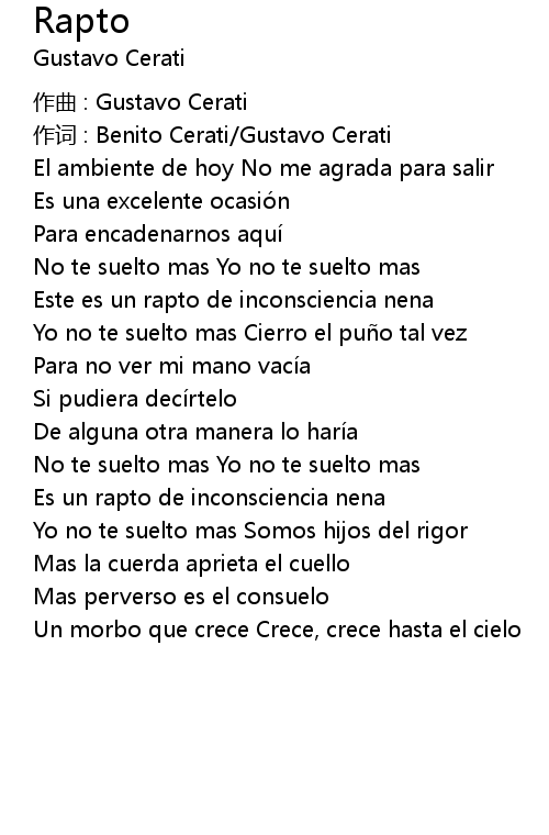 | 作词 : Benito Cerati/Gustavo Cerati | |