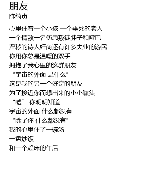 | [00:08.840] | xīn lǐ zhù zhe yí gè xiǎo hái yí gè chuí sǐ de lǎo rén |