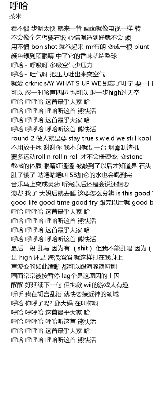 | 呼哈 呼呼哈 这首最乎大家 哈 | |