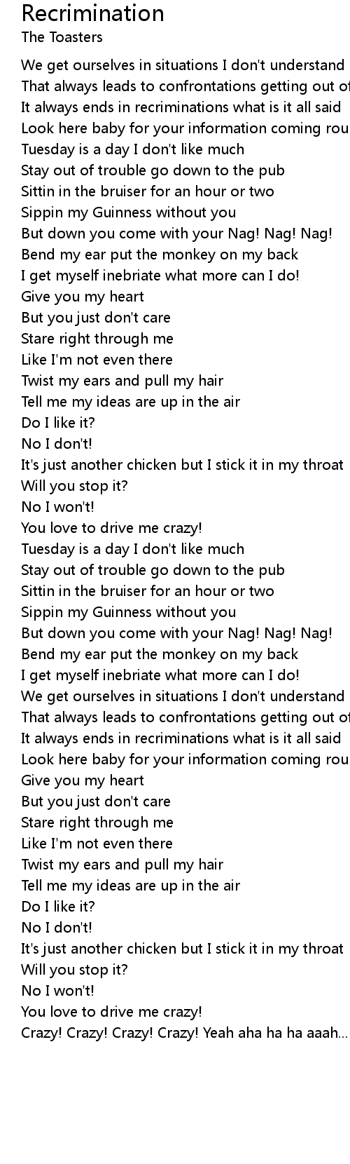 It always ends in recriminations what is it all said |