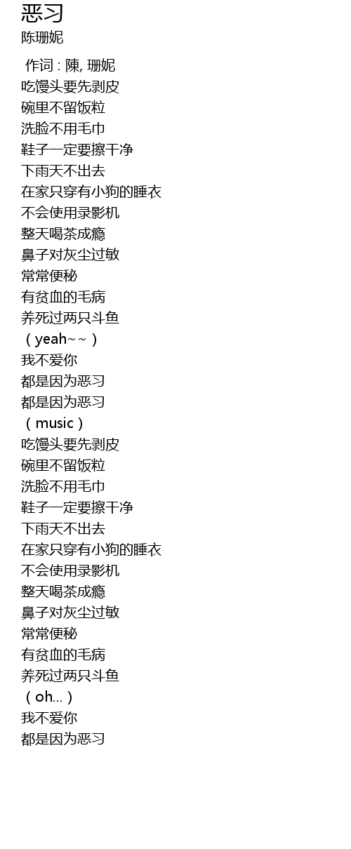 | [00:55.67] | 都是因为恶习 |