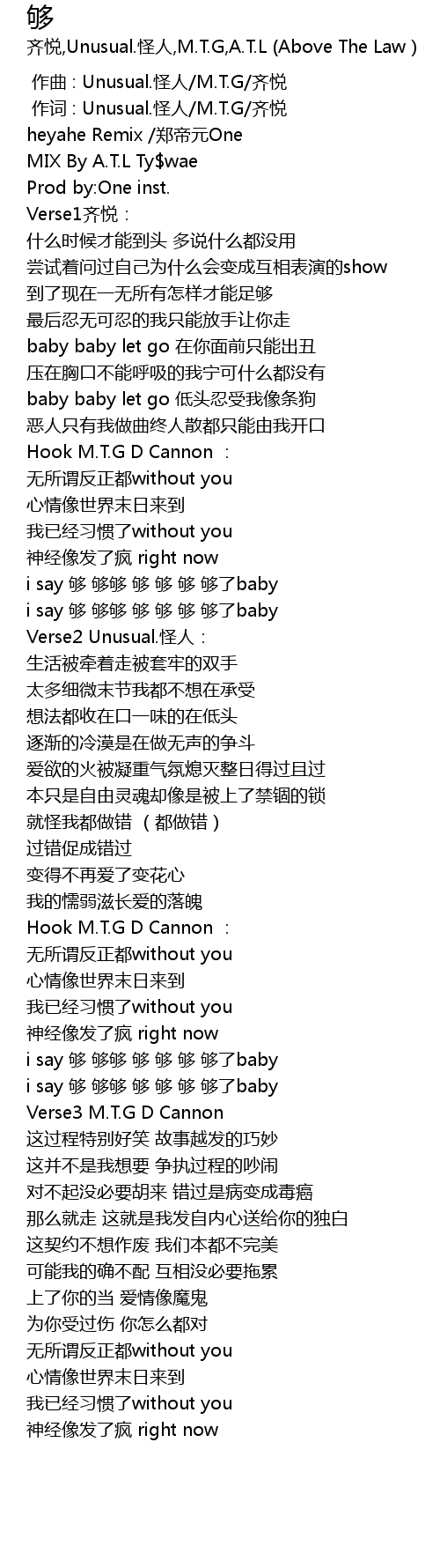 | [02:00.169] | i say 够 够够 够 够 够 够了baby |