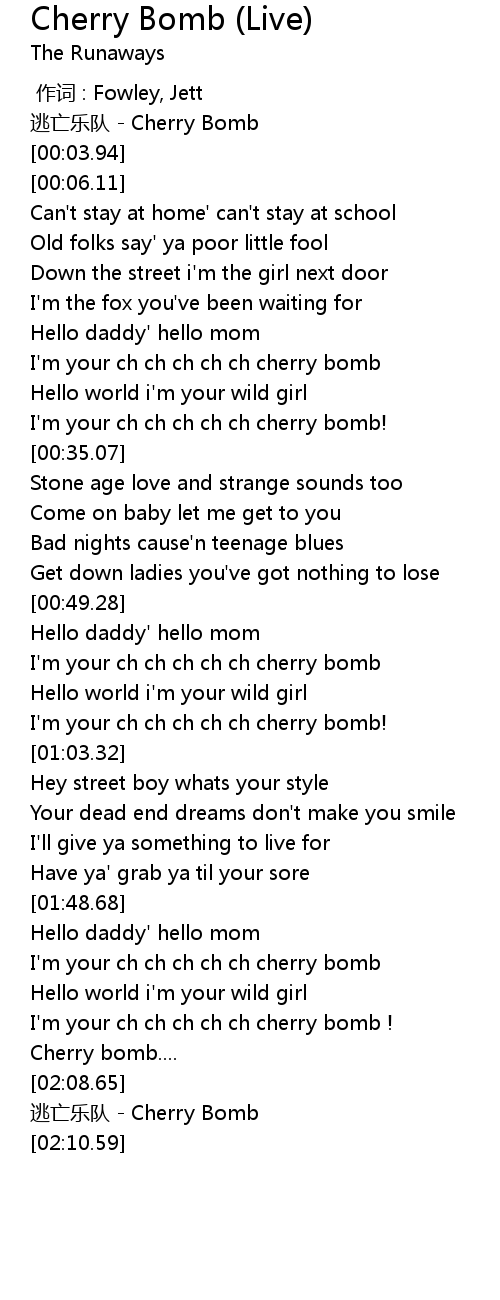 | [00:59.68] | I' m your ch ch ch ch ch cherry bomb! |