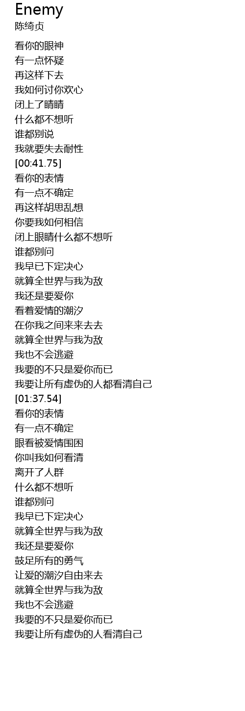 | [00:43.00] | kàn nǐ de biǎo qíng |