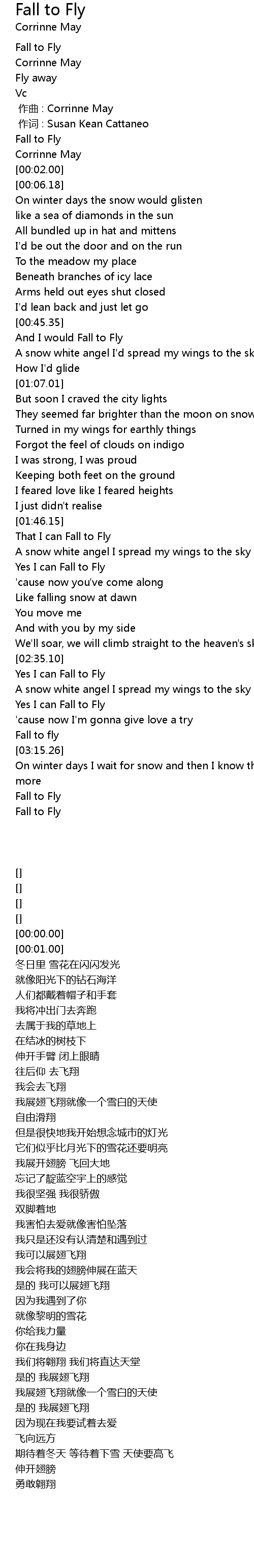 | [03:09.99] | Fall to fly |