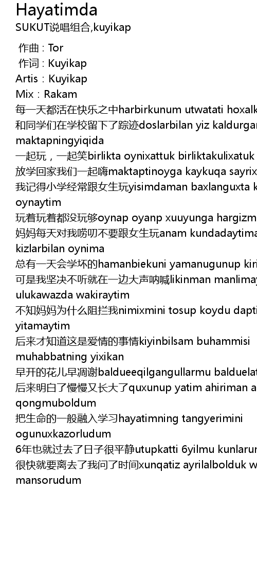 | [00:50.432] | 后来才知道这是爱情的事情kiyinbilsam buhammisi muhabbatning yixikan |