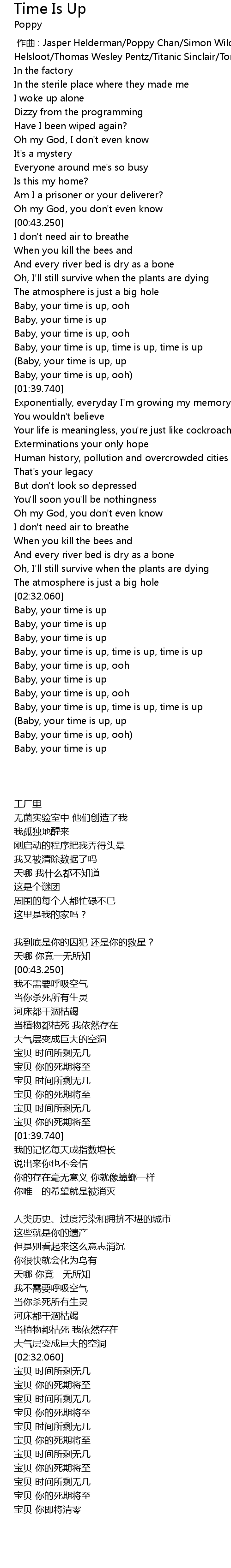 | [02:47.440] | Baby, your time is up, time is up, time is up |