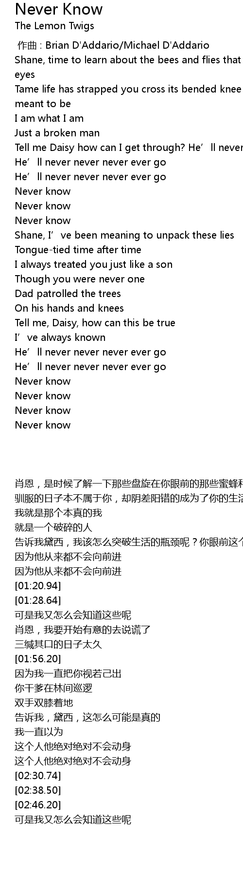 | [02:30.74] | Never know |