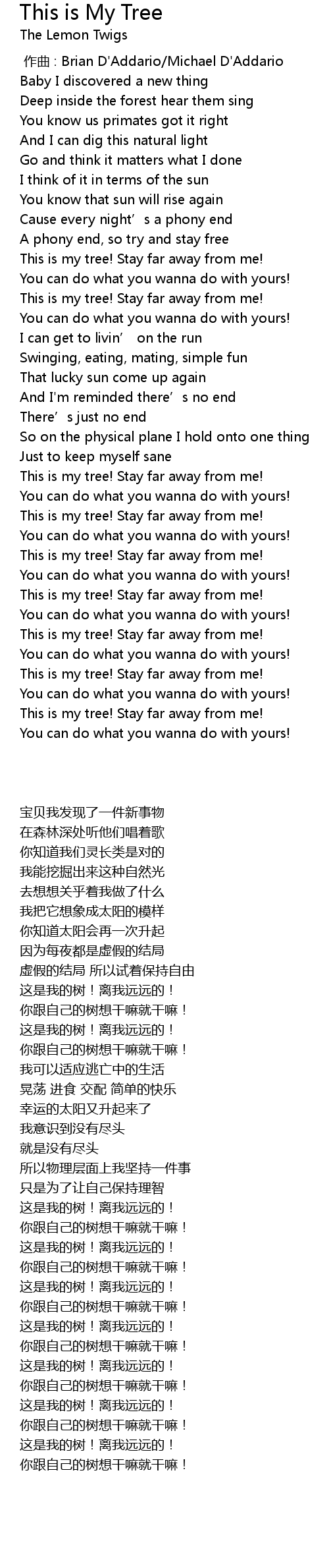| [02:41.49] | 你跟自己的树想干嘛就干嘛! |