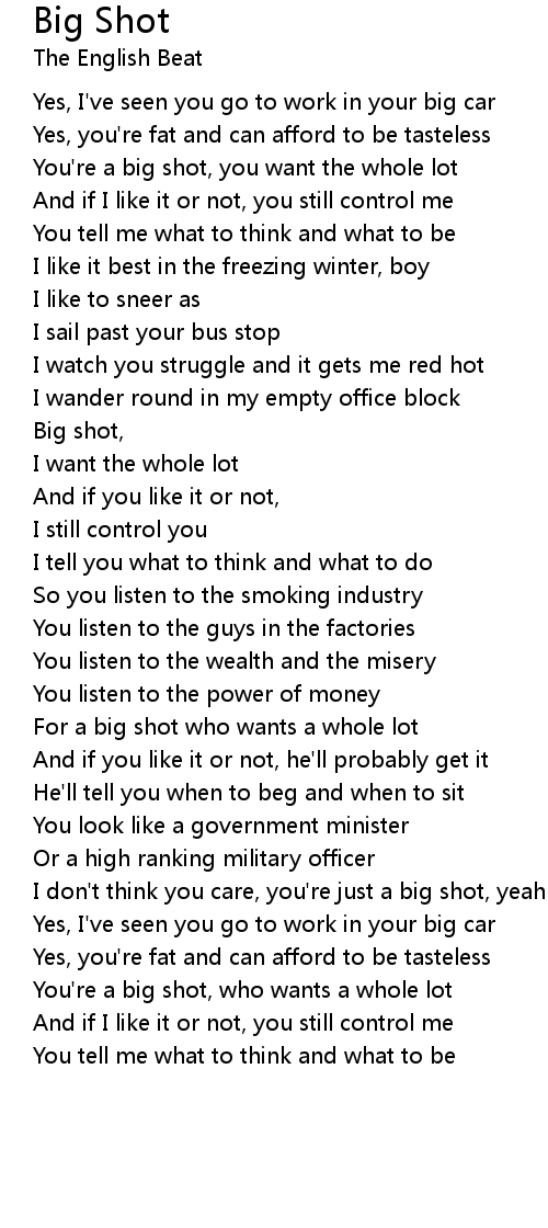 You're a big shot, who wants a whole lot |