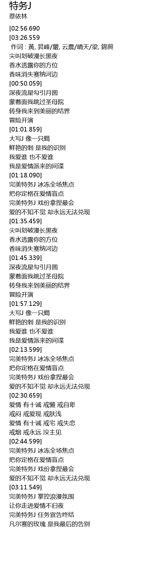 | [03:12.599] | 完美特务J 掌控浪漫氛围 |