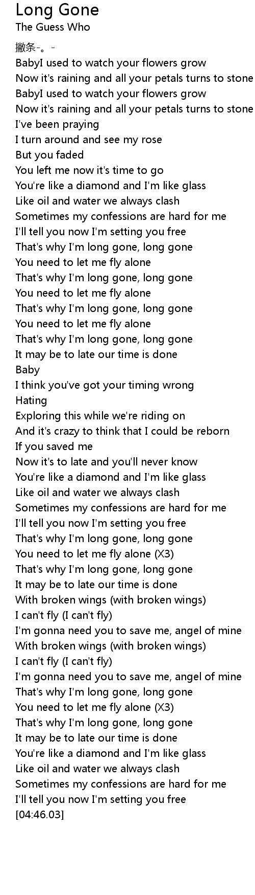 | [04:18.00] | That's why I'm long gone, long gone |