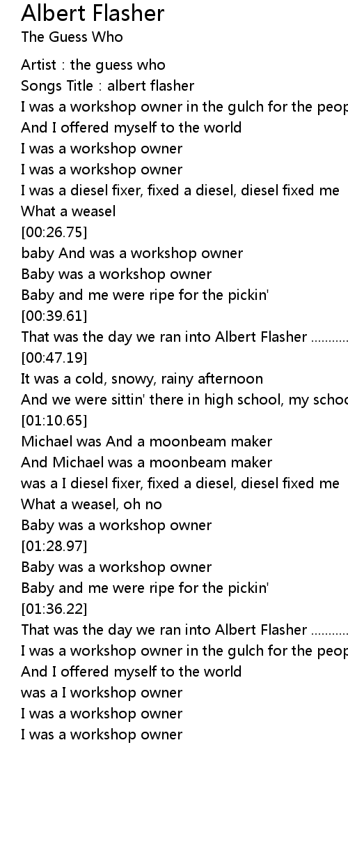 | [00:41.61] | That was the day we ran into Albert Flasher ............. |