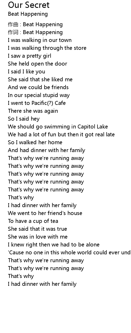 | 作词 : Beat Happening | |
