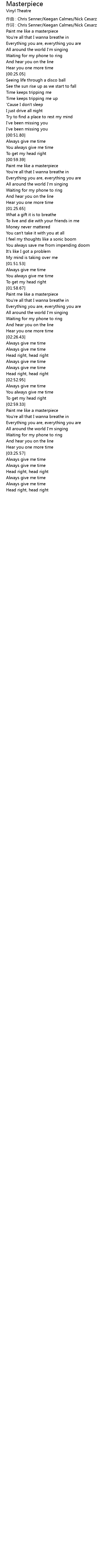 | 作词 : Chris Senner/Keegan Calmes/Nick Cesarz | |