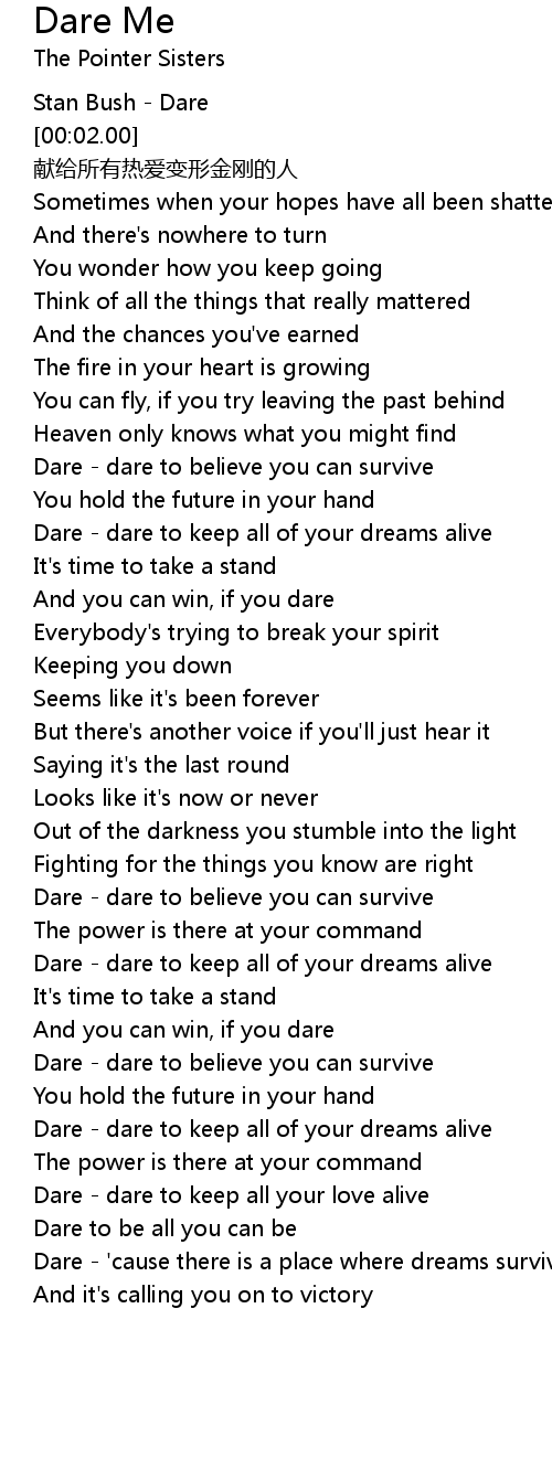| [03:34.10] | Dare - 'cause there is a place where dreams survive |