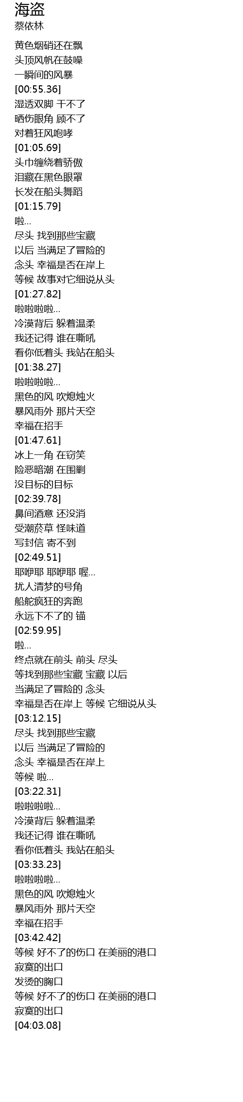 | [03:33.46] | 啦啦啦啦... |