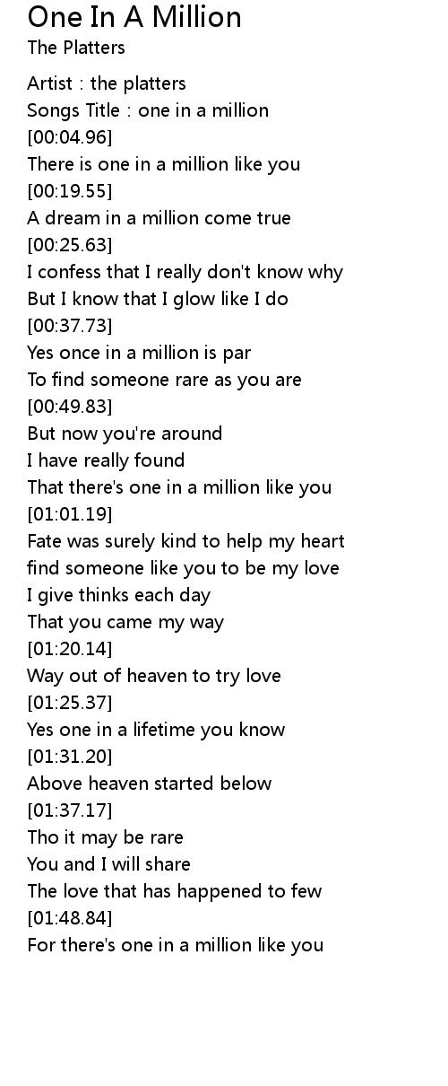 | [00:57.10] | That there's one in a million like you |