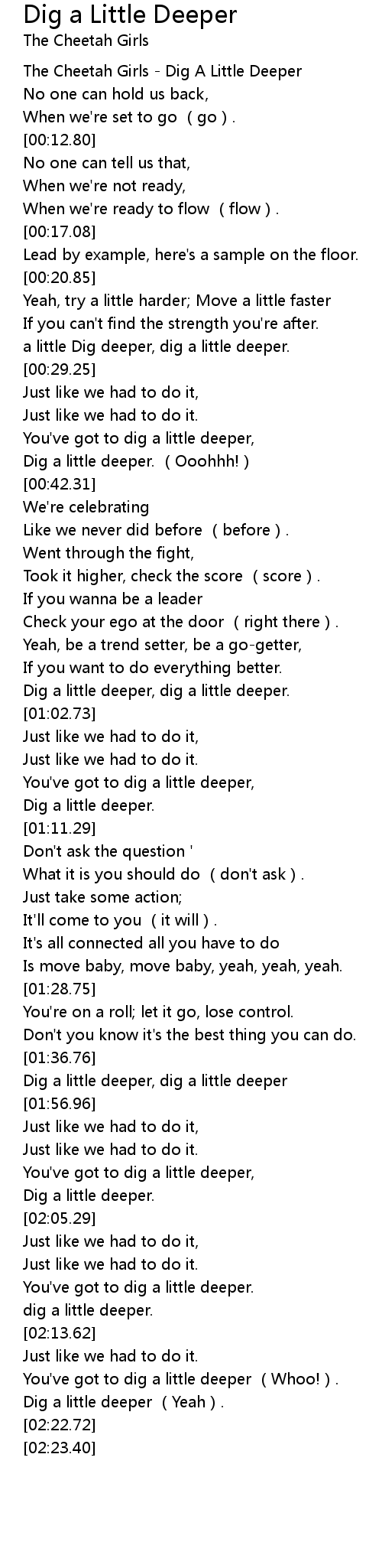 | [00:25.86] | a little Dig deeper, dig a little deeper. |