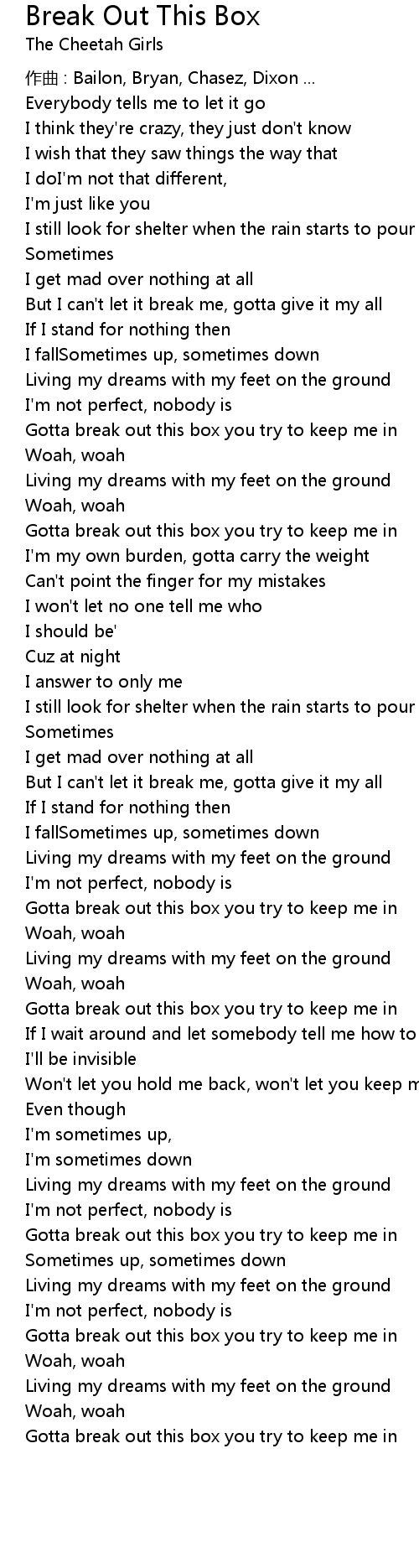 | Won' t let you hold me back, won' t let you keep me boxed in | |