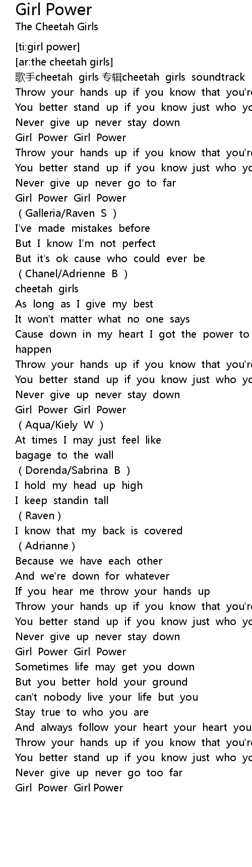 | [00:01.301] | ge shou cheetah girls zhuan ji cheetah girls soundtrack |