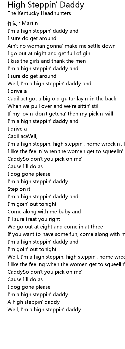 | I'm a high steppin, high steppin', home wreckin', low down daddy | |