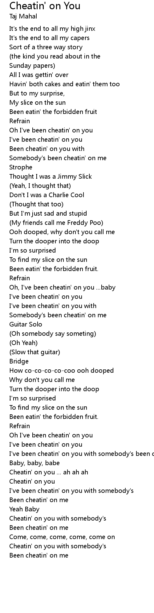 Oh, I've been cheatin' on you ...baby |