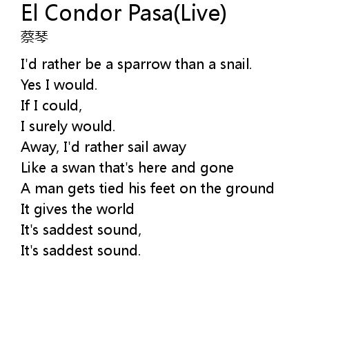 | [00:16.700] | I'd rather be a sparrow than a snail. |