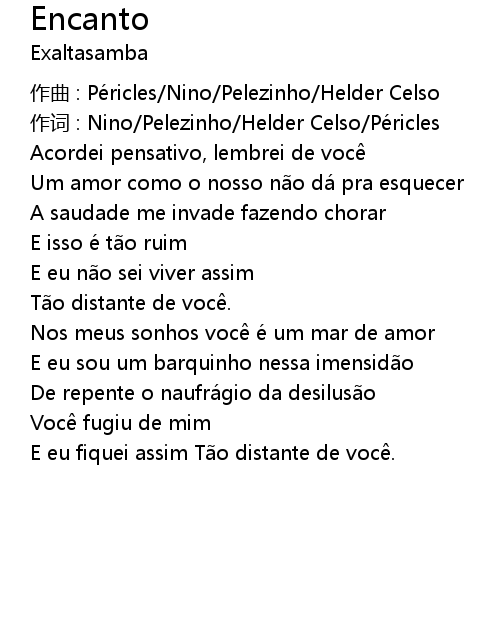 | 作词 : Nino/Pelezinho/Helder Celso/Péricles | |