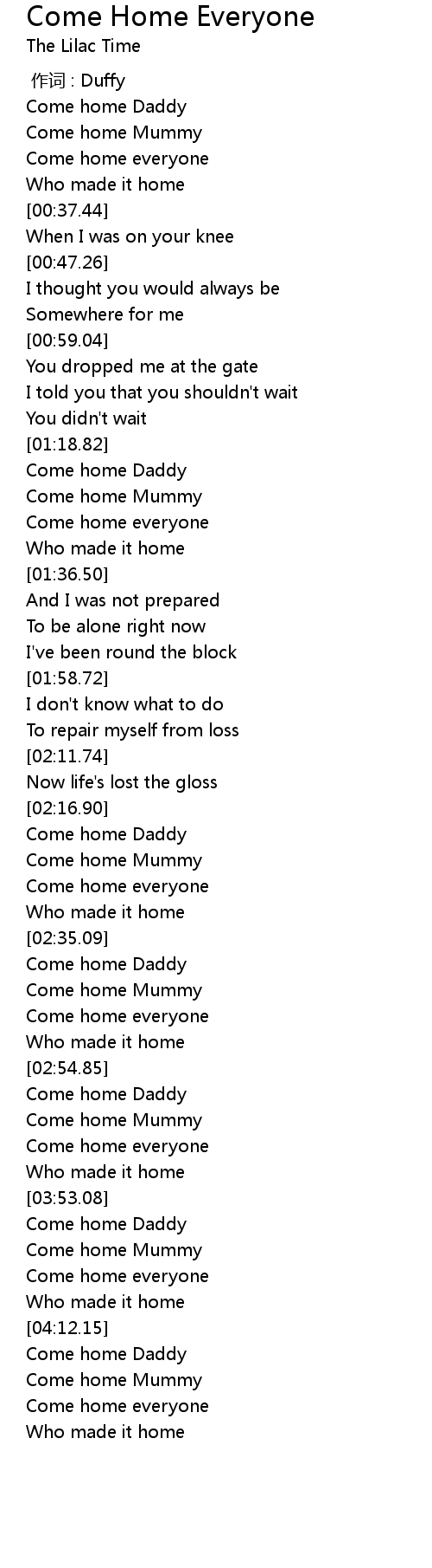 | [02:27.47] | Come home everyone |