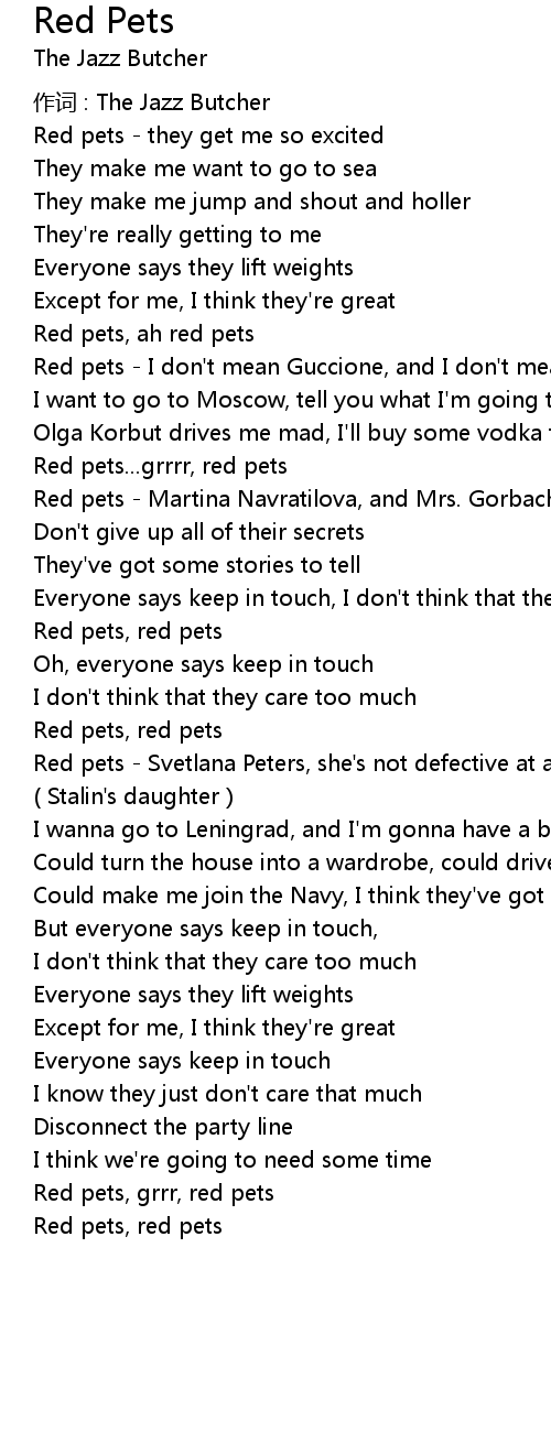 | Red pets, red pets | |