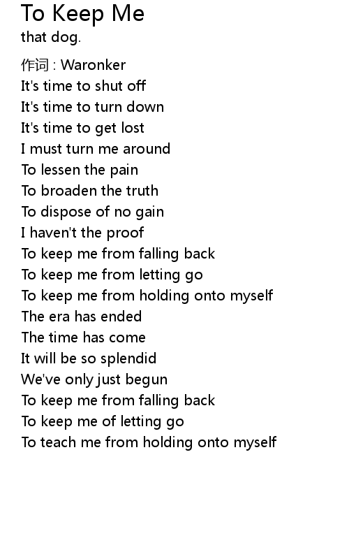 | 歌曲 | To Keep Me |