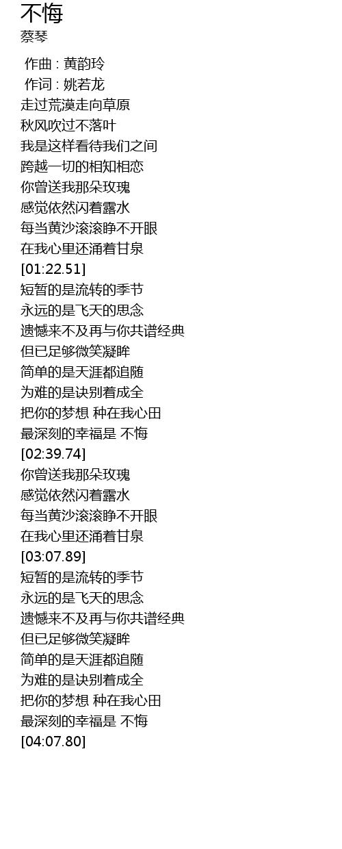 | [03:52.68] | 最深刻的幸福是 不悔 |