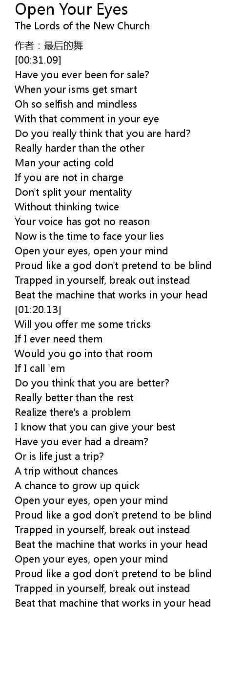 | [01:58.27] | Proud like a god don't pretend to be blind |