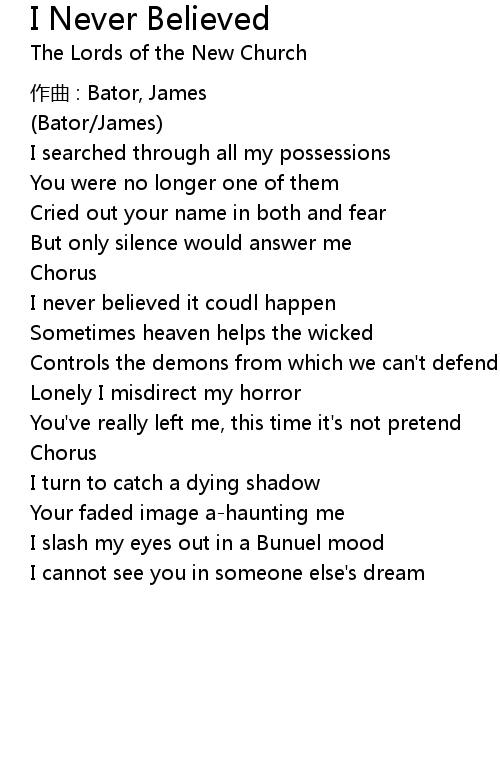 | 歌曲 | I Never Believed |