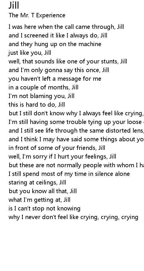 and I'm only gonna say this once, Jill |