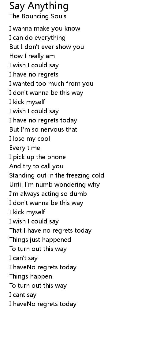 That I have no regrets today |